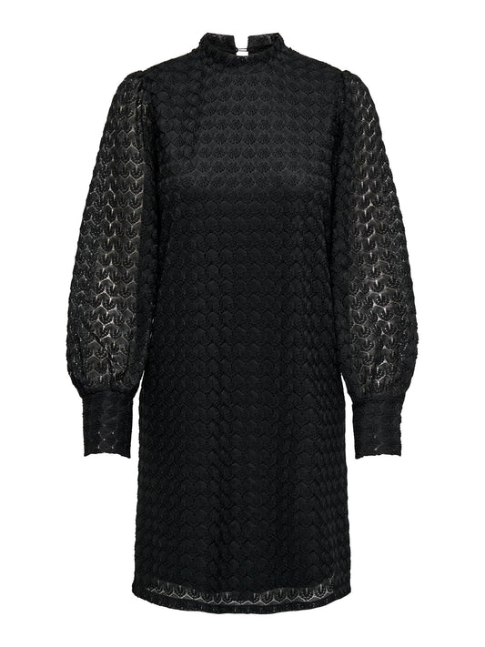 Beskrivelse Produkttype : Blondekjole Neck : Høj hals Ærme : Lange ærmer Lukning : Knaplukning...