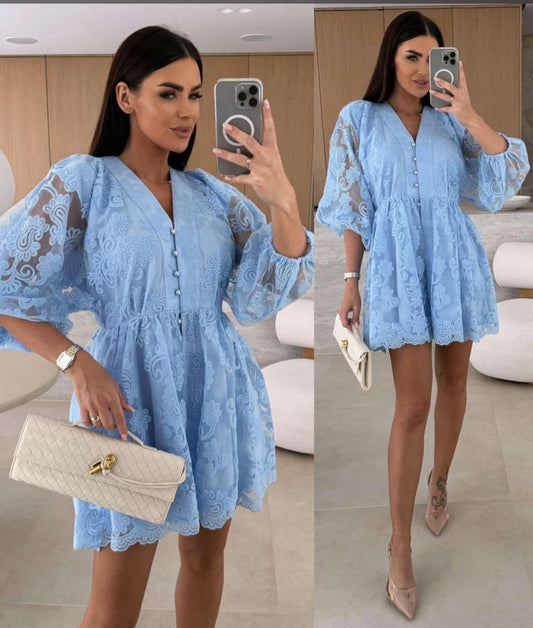 Beskrivelse: lækreste kvalitets kjole  med blonder  og det skønneste snit.