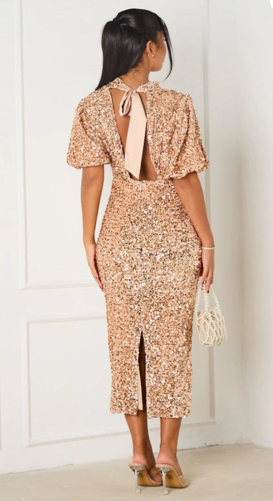 beskrivelse: skønneste nye kjole med de smukkeste detaljer samt pallietter på