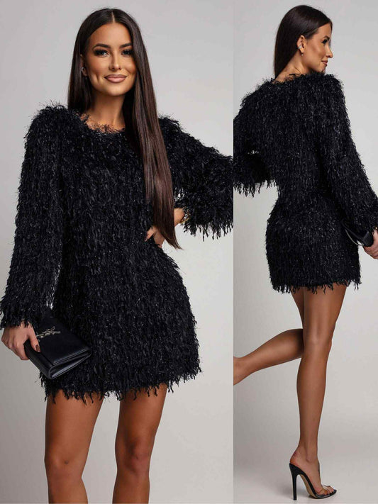 Beskrivelse: lækreste palliet kjole med fjer pynt og smukke detaljer på.