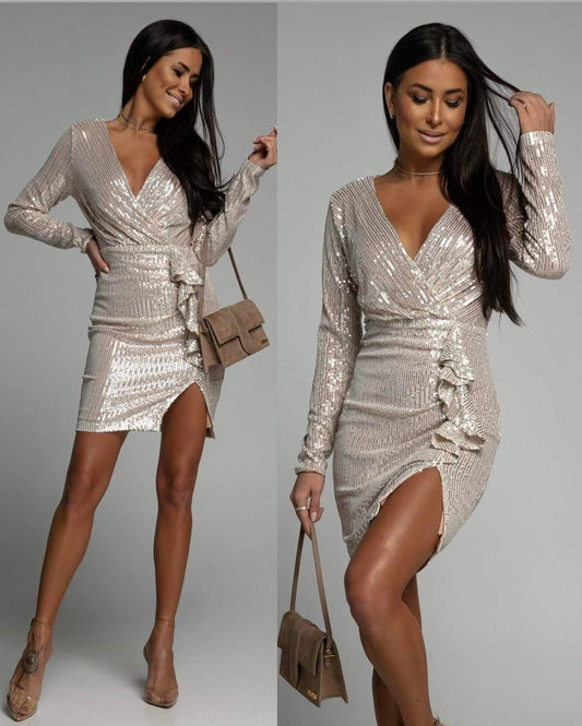 Beskrivelsen: Den fineste fest kjole med pallietter, normal i str. modellen er i en str....