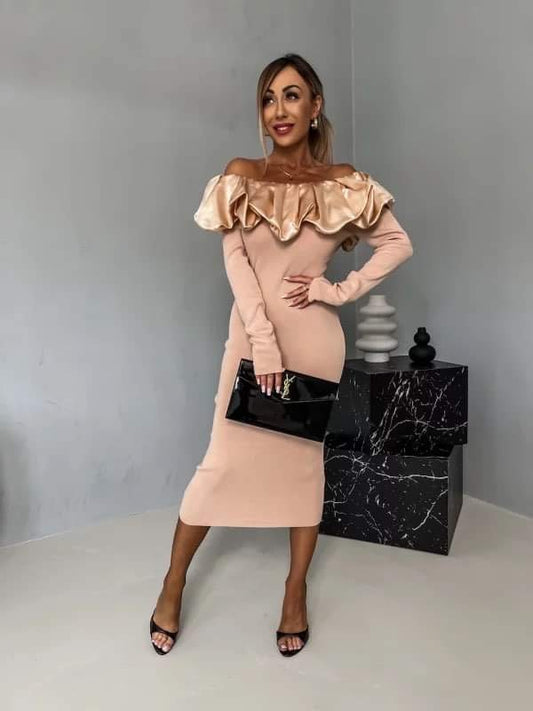 Beskrivelse Produkttype : Plisseret kjole Hals : Bådudskæring Ærmelængde : Lange ærmer Længde/størrelse : Over...
