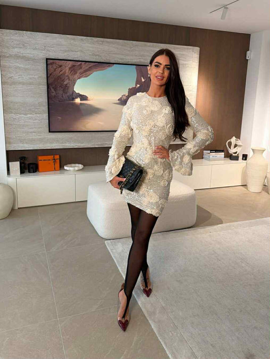 beskrivelse: skønneste nye kjole med de smukkeste detaljer samt pallietter på størrelse: modellen er i en...