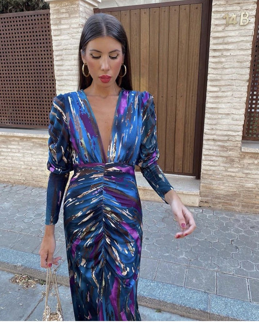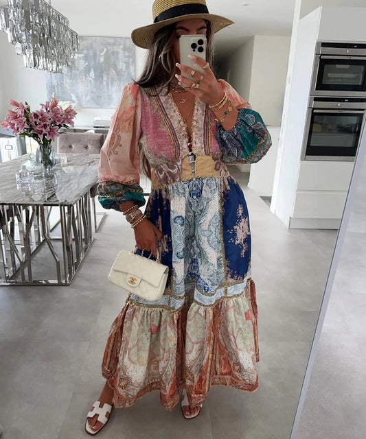 BESKRIVELSE: Fineste mønstrede kjole med det fineste lette stof. Virkeligt en kvalitets luksus kjole....