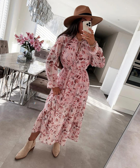 BESKRIVELSE: Fineste blomstrede kjole med det fineste lette stof. Virkeligt en kvalitets luksus kjole....