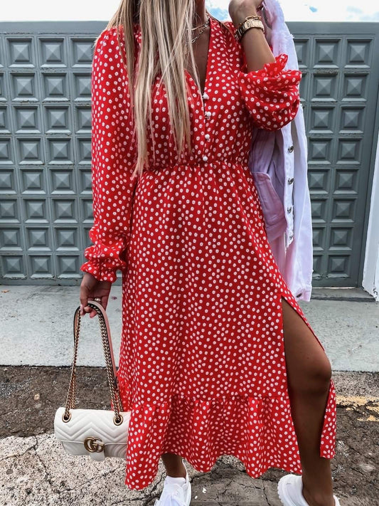 BESKRIVELSE: Findeste prikkese kjole med knapper og slids. let og fin kan styles med en...