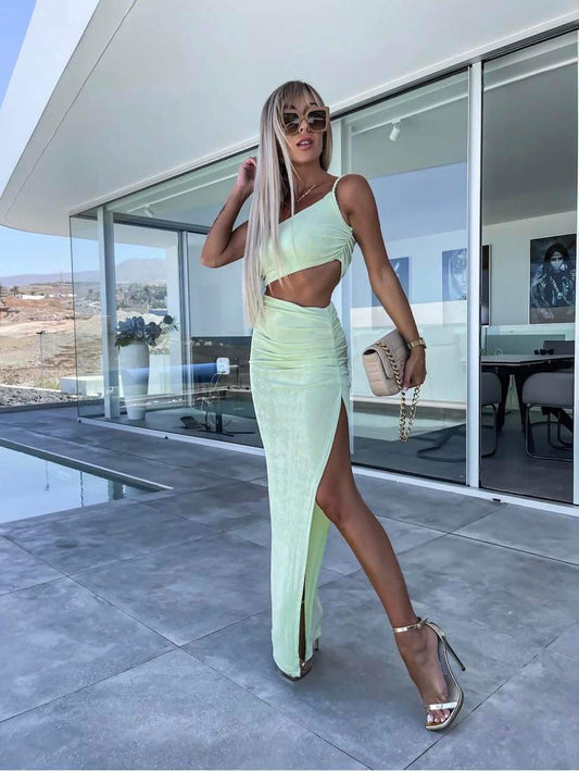 Produkttype : Kjole Neck : O-hals Ærme : Ærmeløs Stropper : Skulderstrop Længde/størrelse : Ankelhøjde...