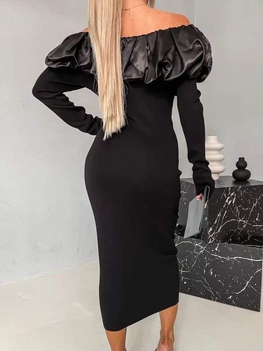 Beskrivelse Produkttype : Plisseret kjole Hals : Bådudskæring Ærmelængde : Lange ærmer Længde/størrelse : Over...