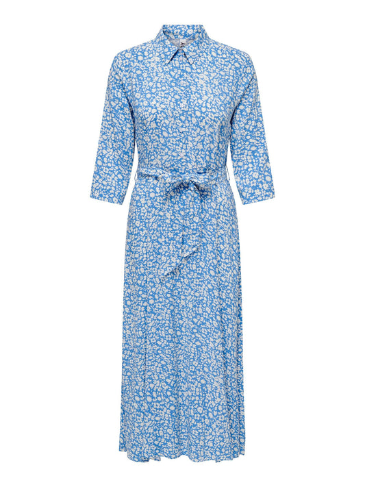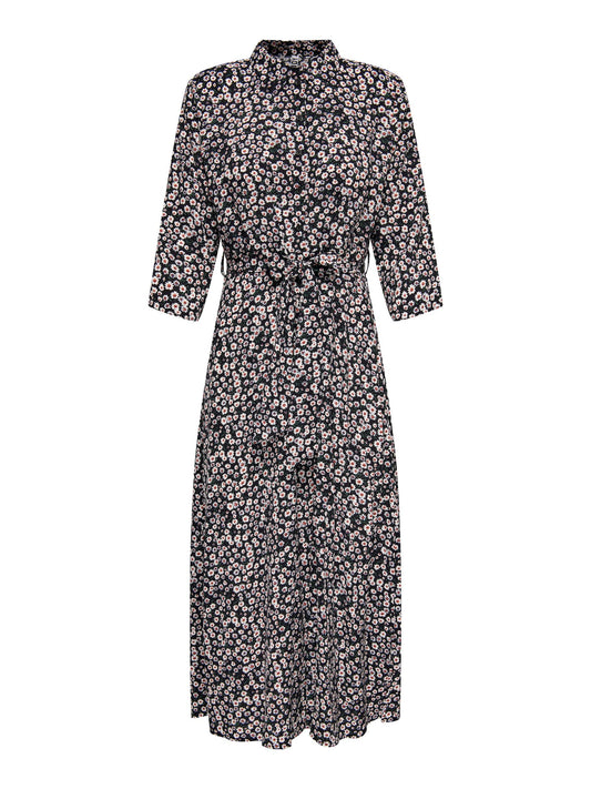 BESKRIVELSE: lækker gennemknappet lang kjole med pufærmer og bindebånd.STØRRELSE: Alm i størrelsen. MATERIALE: 80% Viscose 20% Nylon