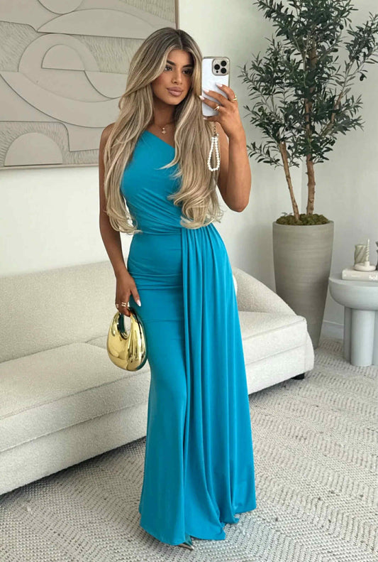 BESKRIVELSE: Fineste smukke kjole med det fineste lette stof. Virkeligt en kvalitets luksus kjole....