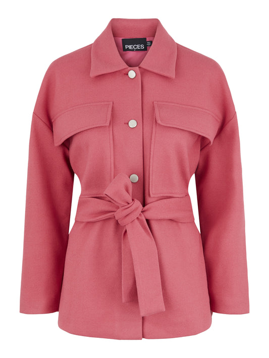 BESKRIVELSE: Smukkeste pink jakke med lækre detaljer. Knapper og bindebånd. STØRRELSE: Alm i størrelsen, Ditte har...