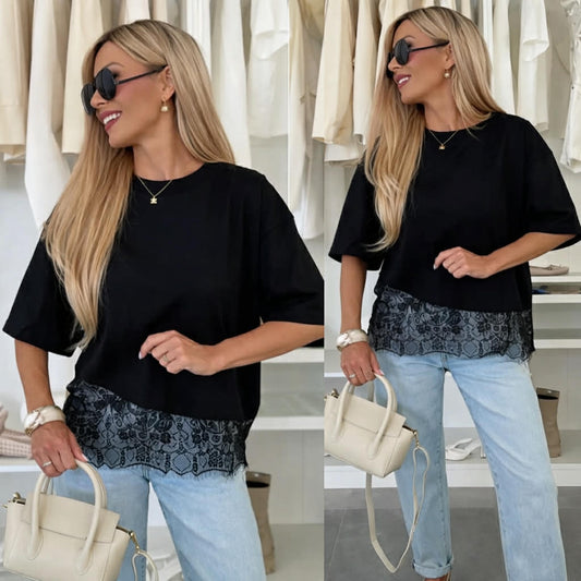 Lace tee i bomuld med stræk i