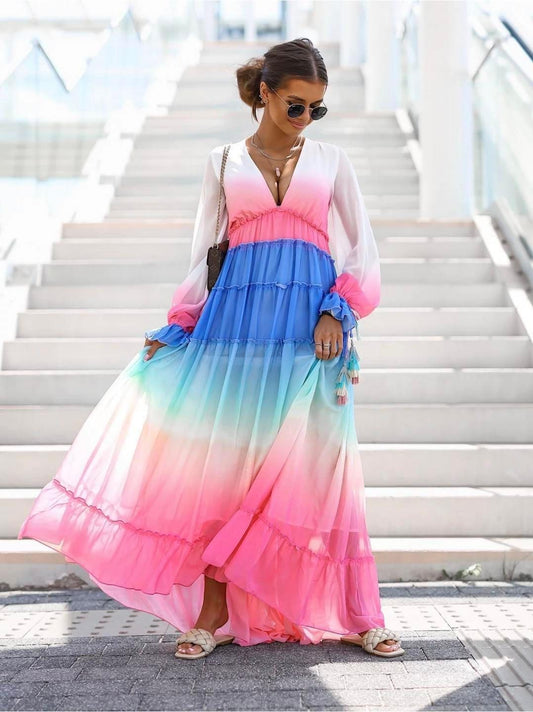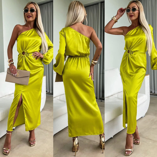 BESKRIVELSE: Fineste lange kjole med det fineste lette stof. Virkeligt en kvalitets luksus kjole....