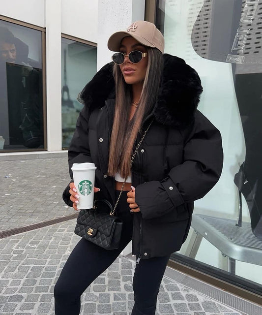 Skønneste varme kvalitets frakke med de fedeste detaljer på. Lavet med fake fur. frakken...