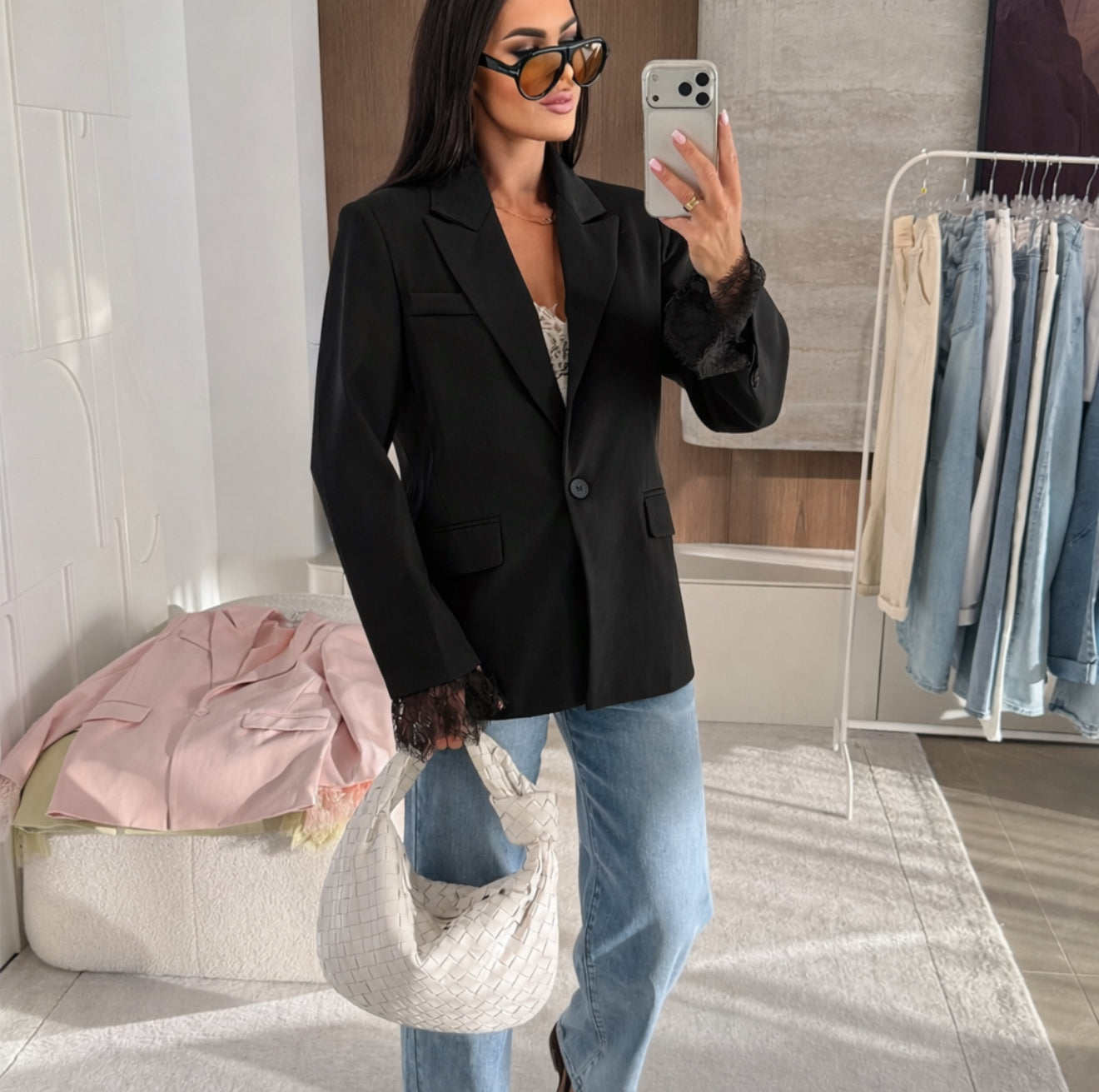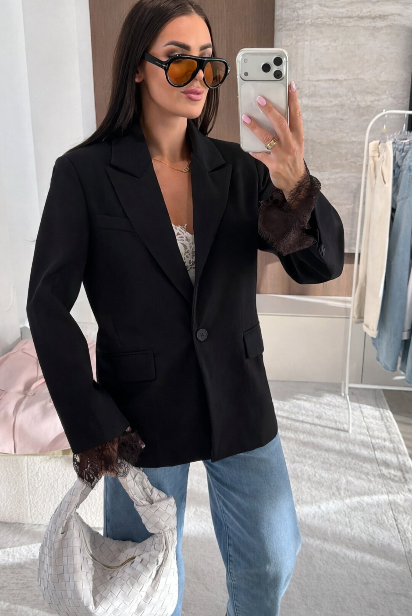 Beskrivelse: smukkeste blazer som har blonde detaljer på.