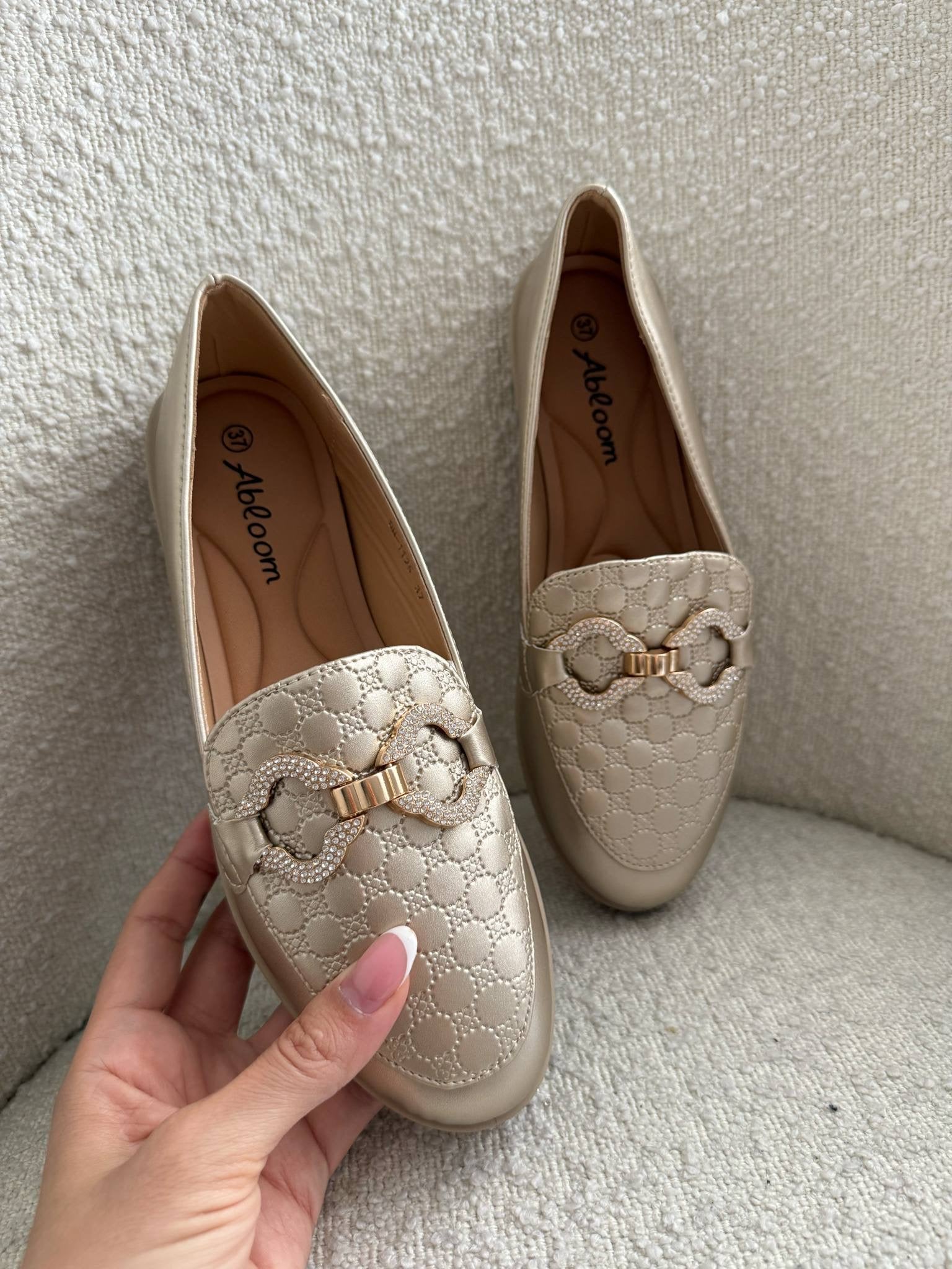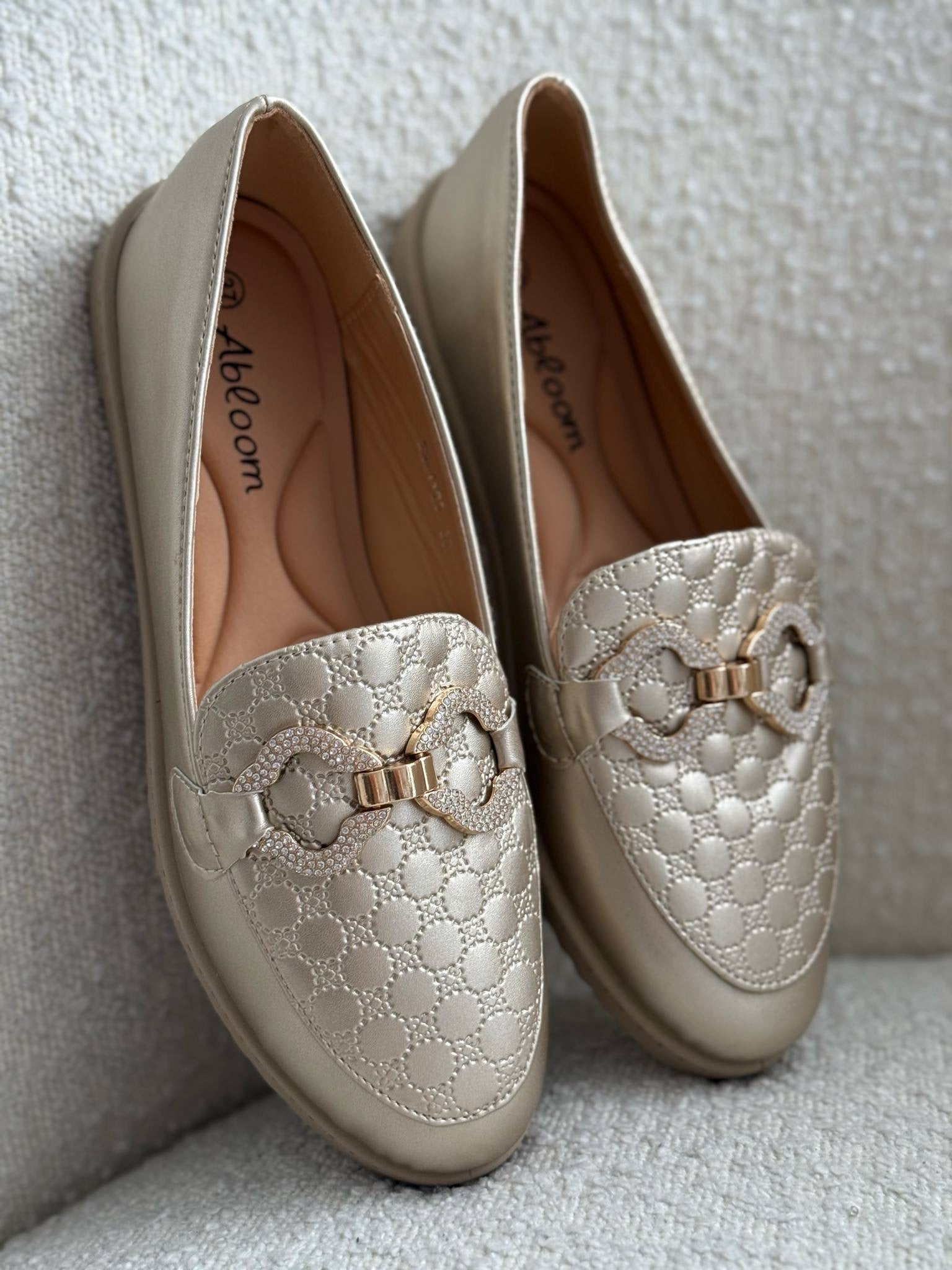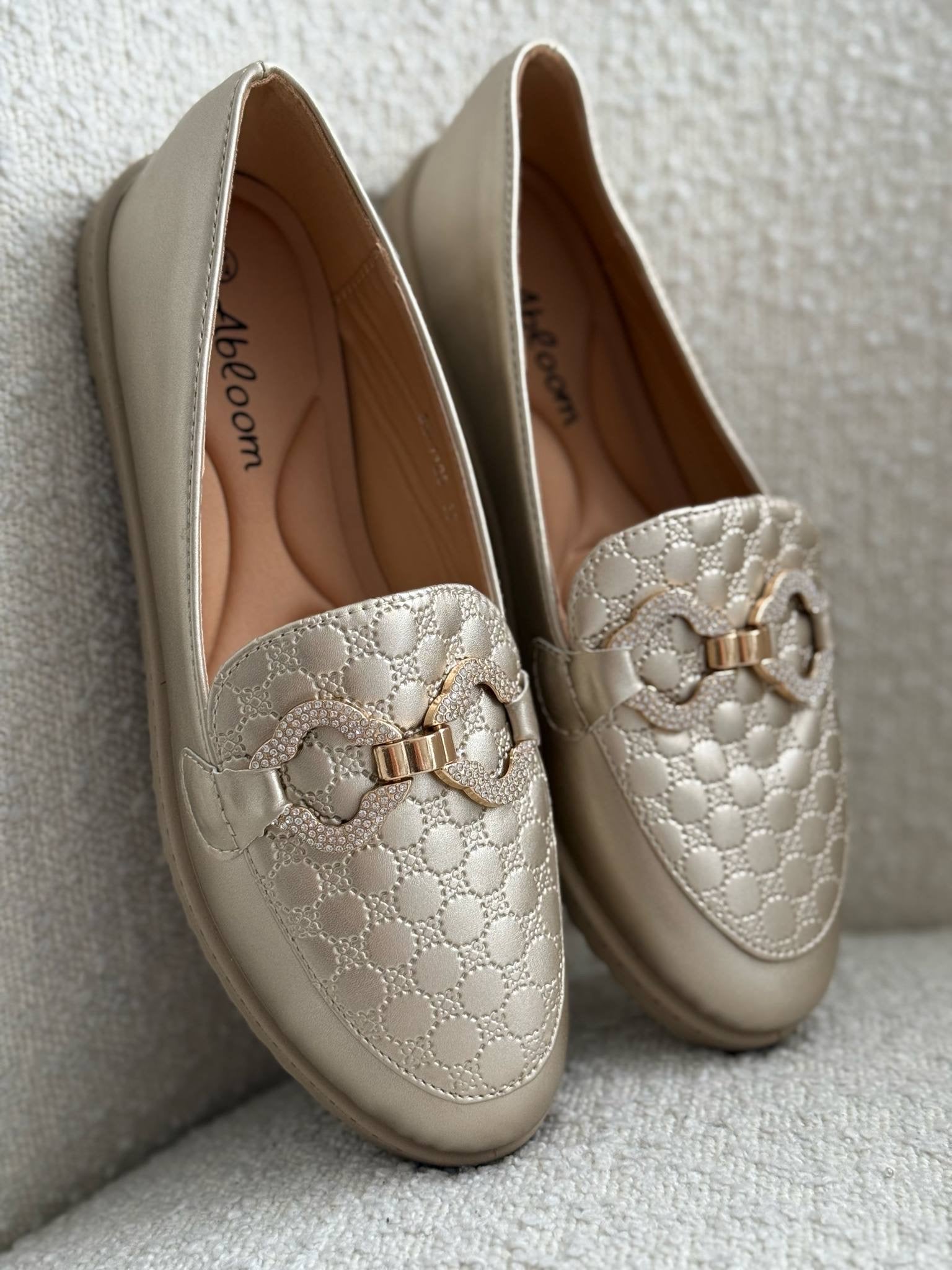 BESKRIVELSE: Fineste nye espadrilles med guld og lækre detaljer.