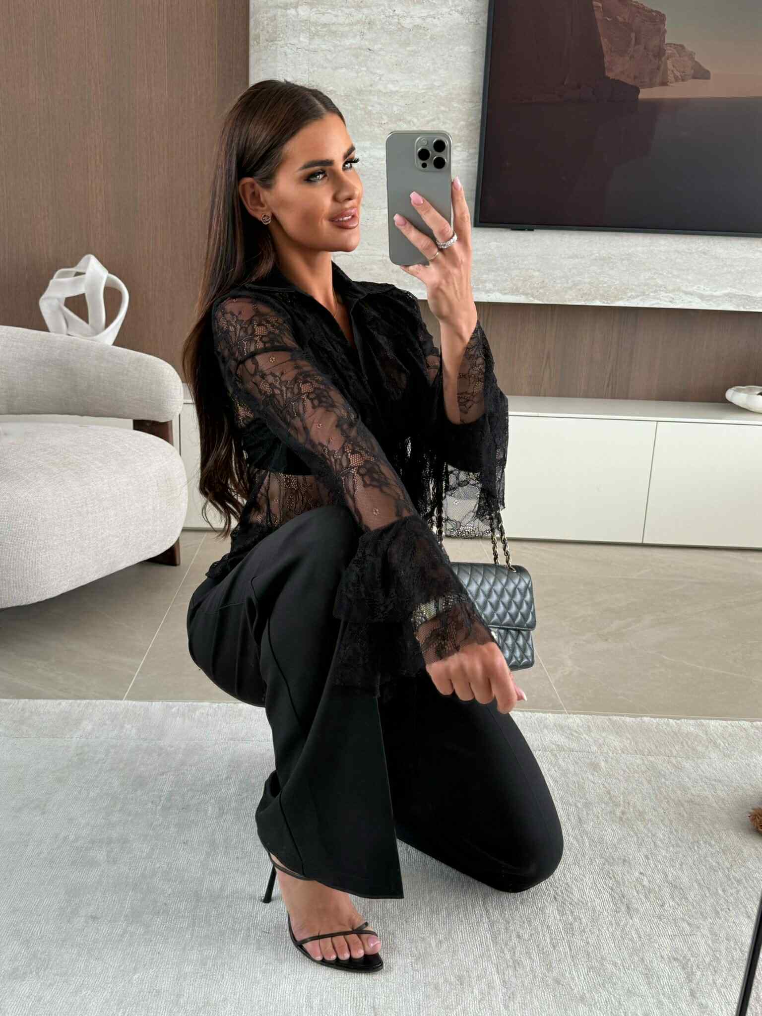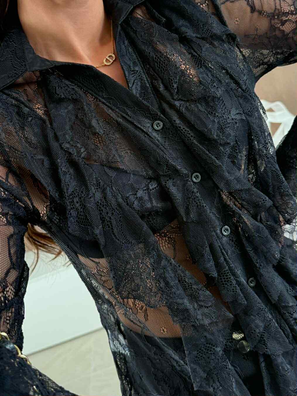 beskrivelse: fineste skjorte med smukke detaljer og blonder på