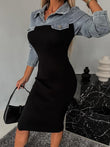 Beskrivelse: skønneste denim stræk kjole med de fedeste detaljer på.