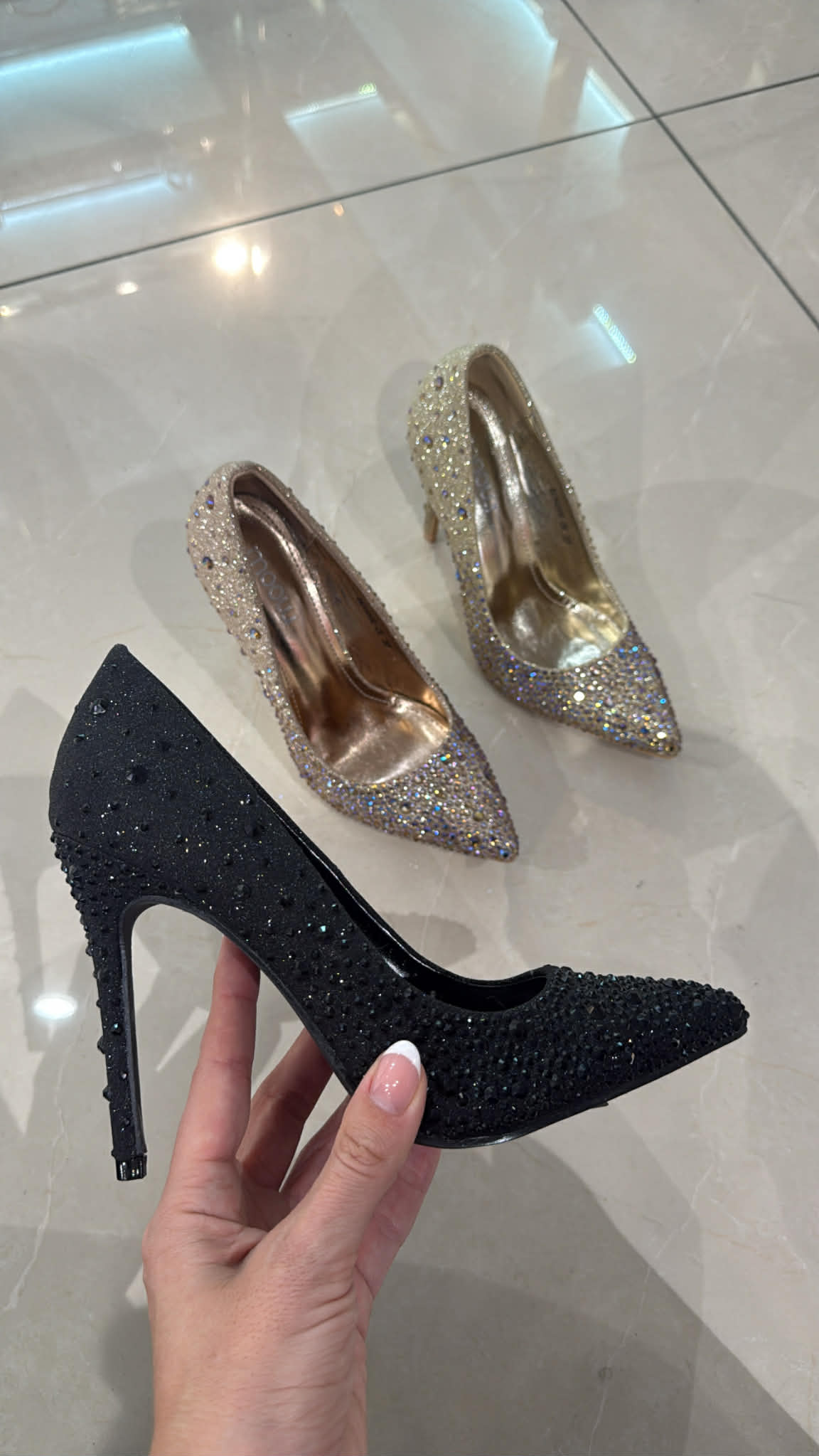beskrivelse: smukkeste stiletter med sten så smukke, 10cm hæl.