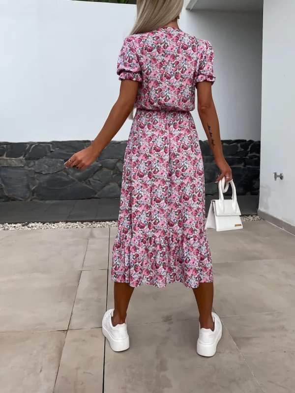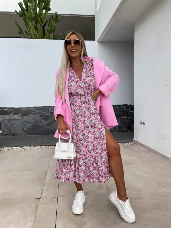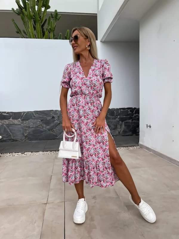 BESKRIVELSE: Fineste blomser kjole med knapper og slids. let og fin kan styles med en sweater.