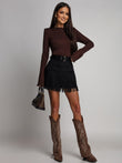 Beskrivelse: Skønneste frynse look nederdel findes i flere farver.