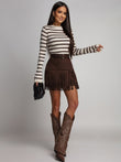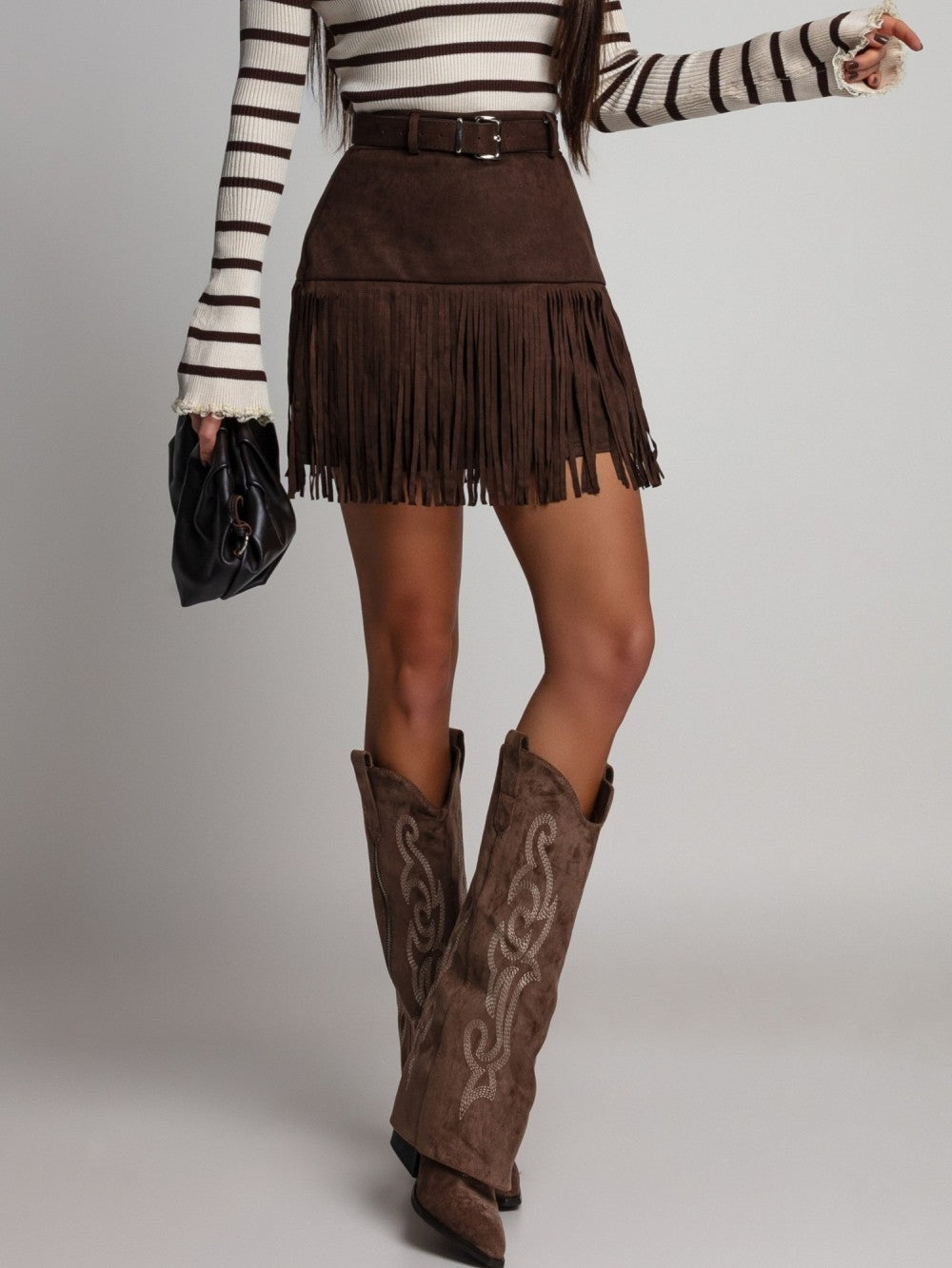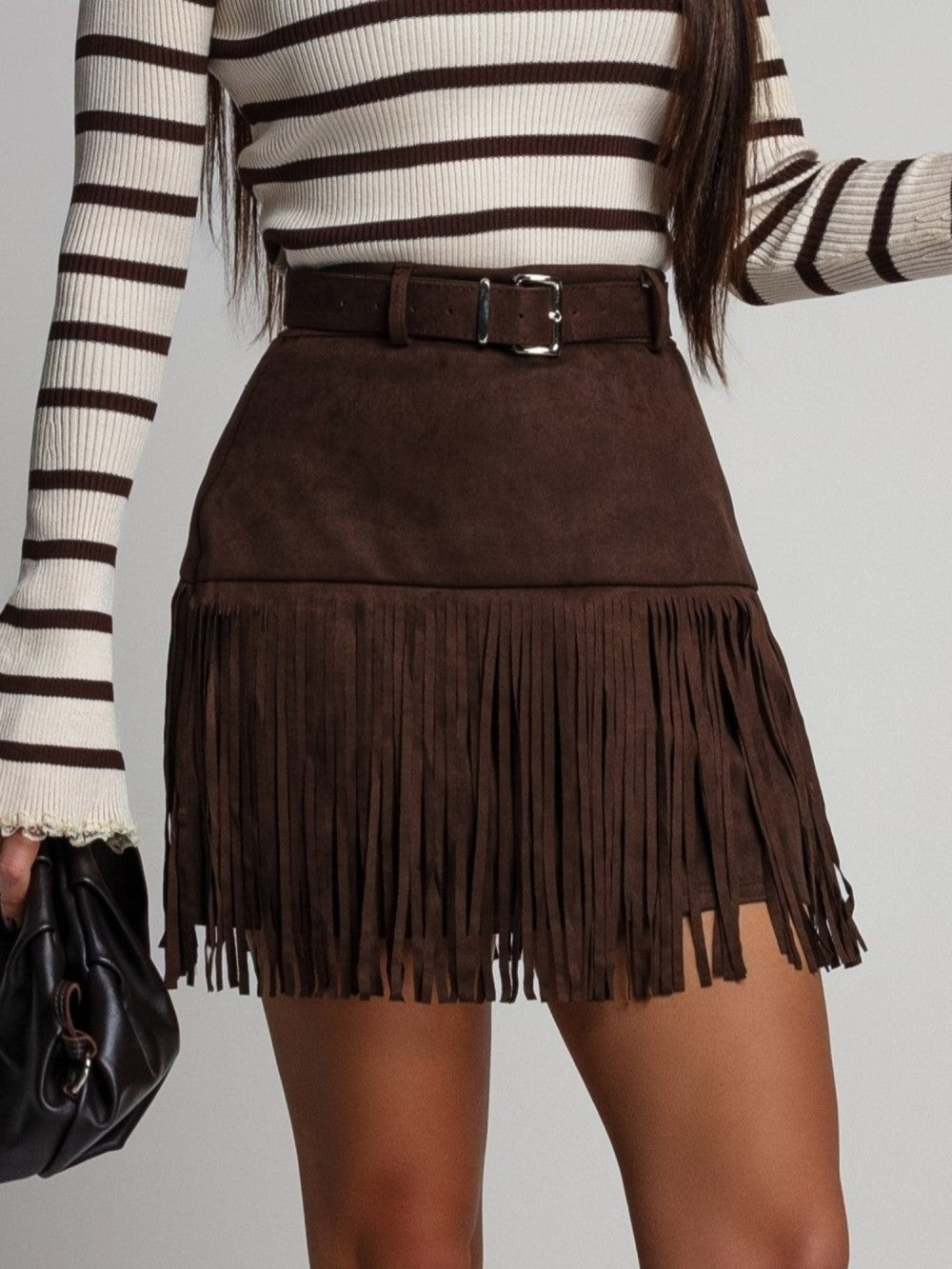 Beskrivelse: Skønneste frynse look nederdel findes i flere farver.