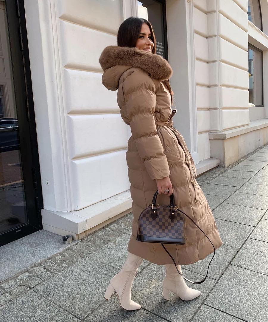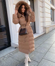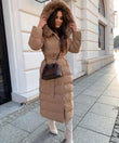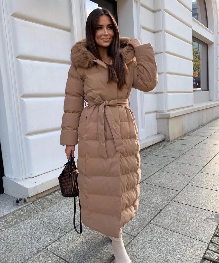 Beskrivelse: lækreste varme frakke. findesi flere farver. Frakken har lommer samt fake fur og knapper i, den kan justeres i livet med bælte.
