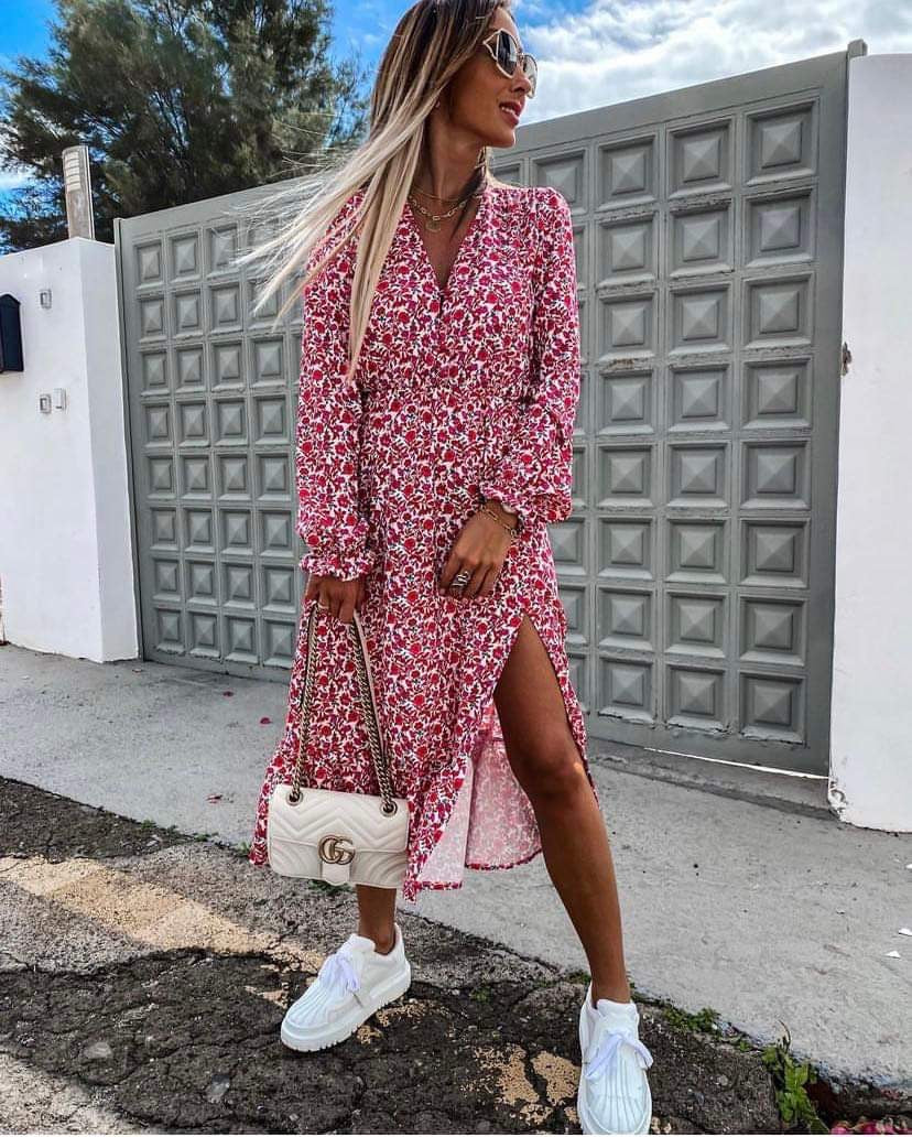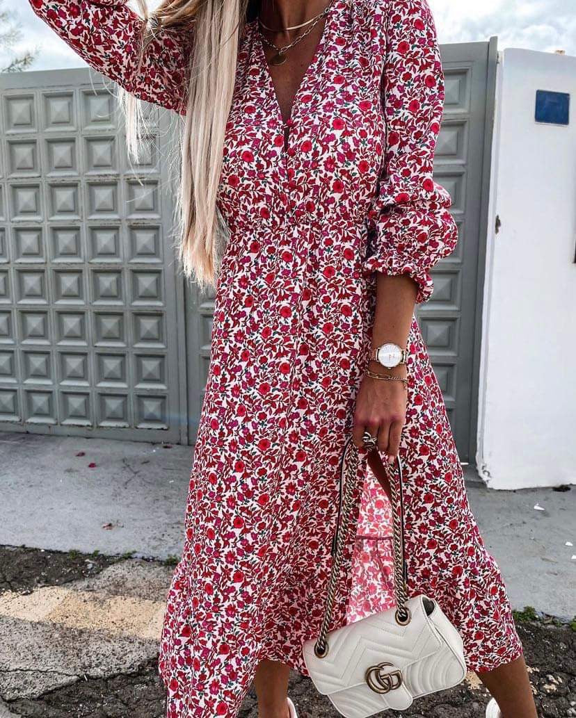 BESKRIVELSE: Fineste blomser kjole med knapper og slids. let og fin kan styles med en sweater.