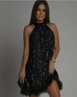 beskrivelse: skønneste nye kjole med de smukkeste detaljer samt pallietter på. Obs modellen har bælte på