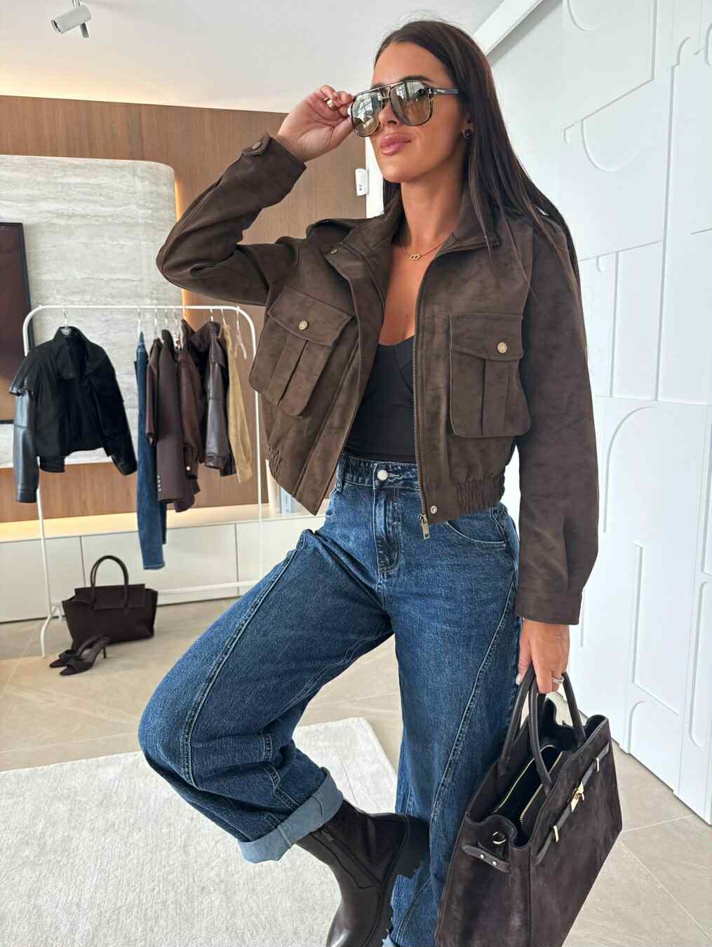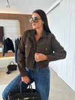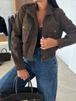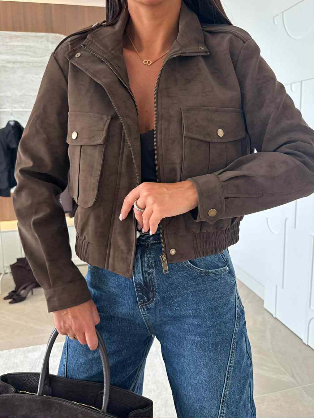 BESKRIVELSE: Fineste ruskinds look jakke med det fineste lette stof. Stræk i.