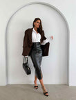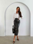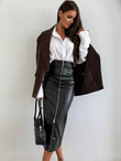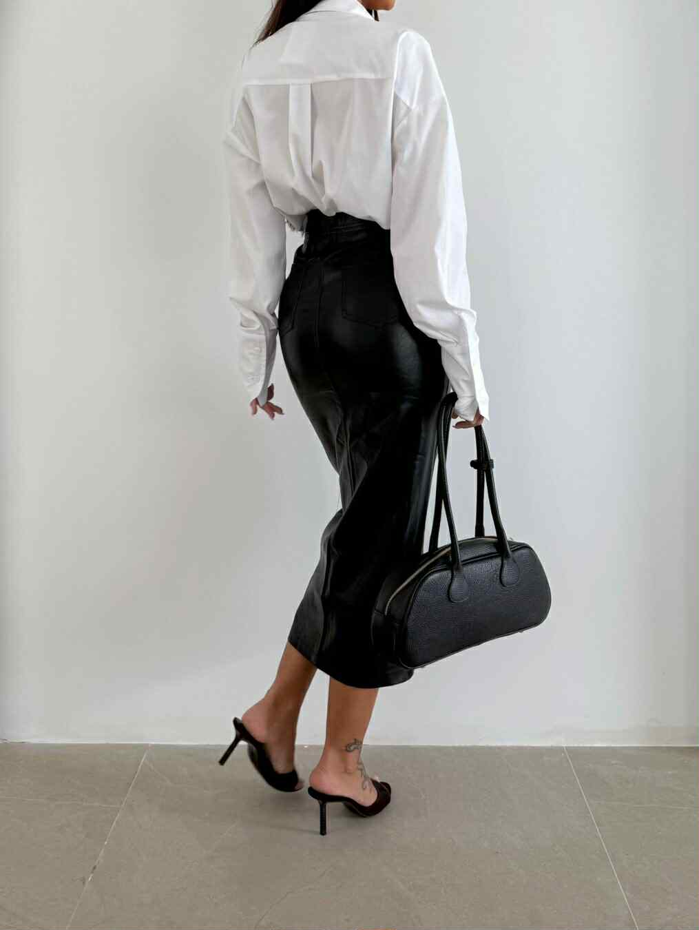 Beskrivelse: Skønneste læder look skirt med lynlås og fine detaljer.