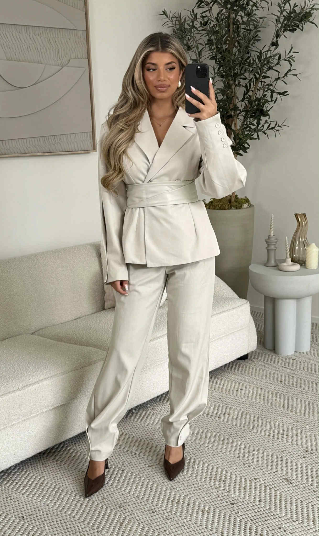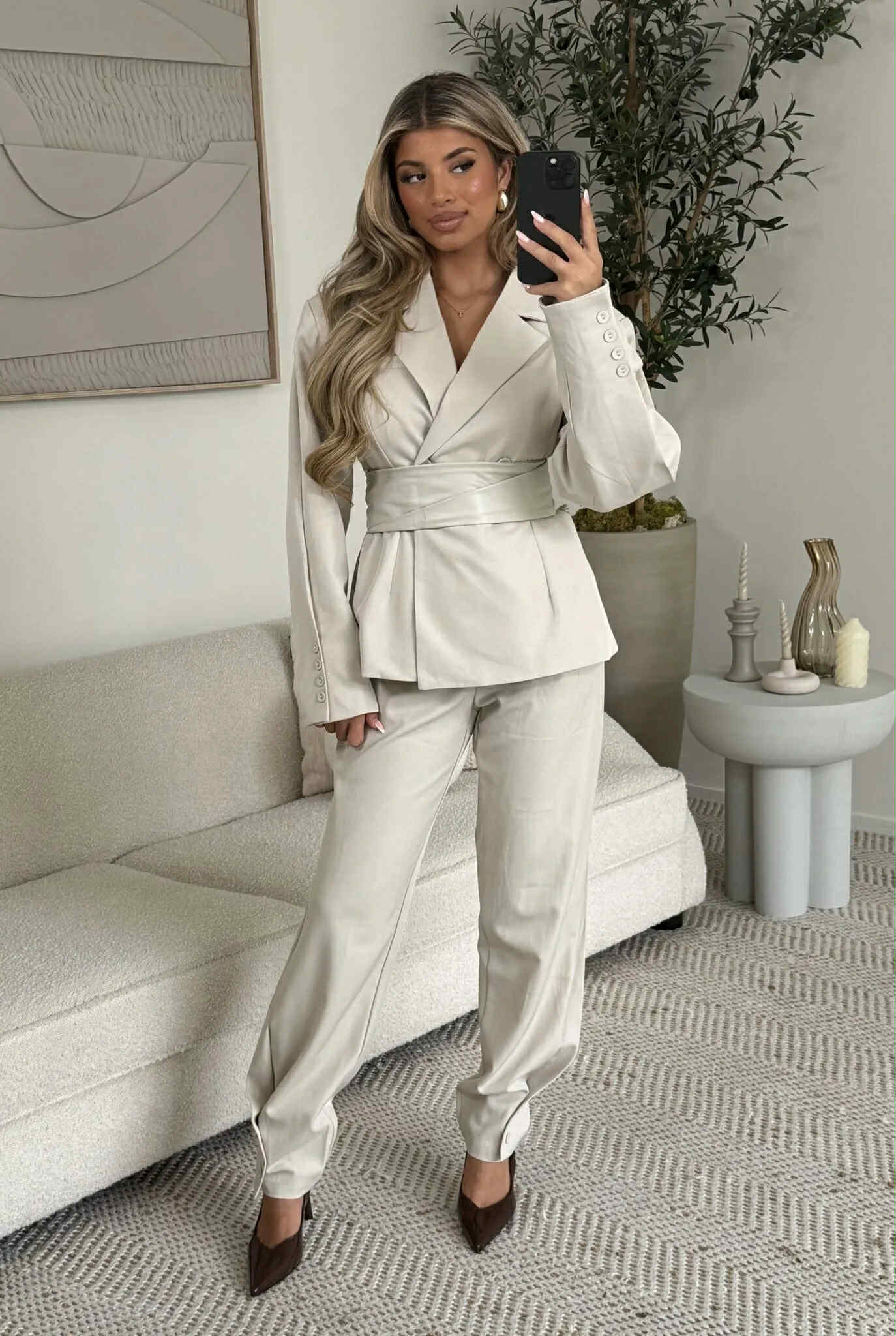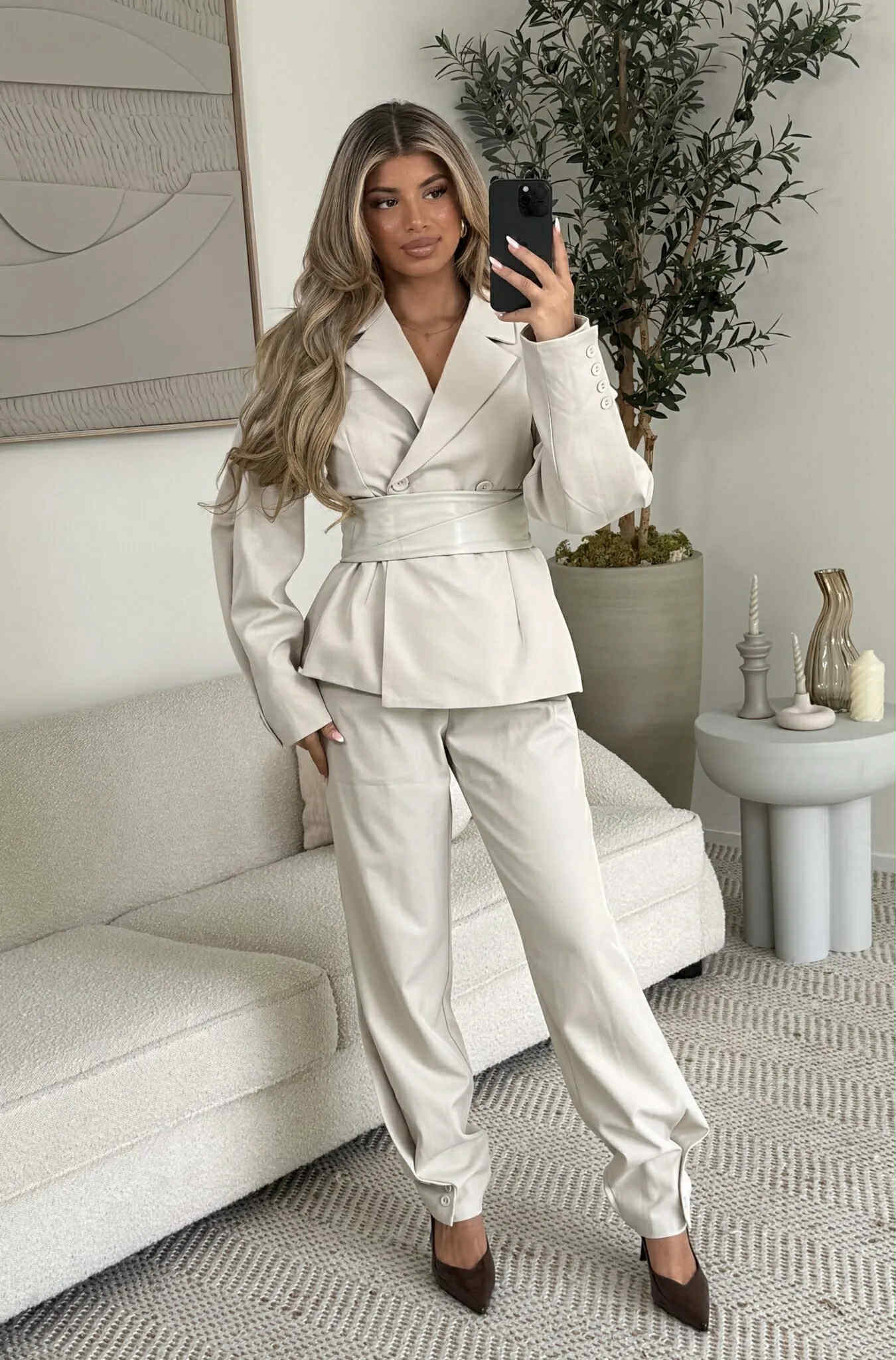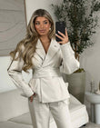 Bæltet kan aftages på blazeren og bukserne er der fede knap detaljer på.