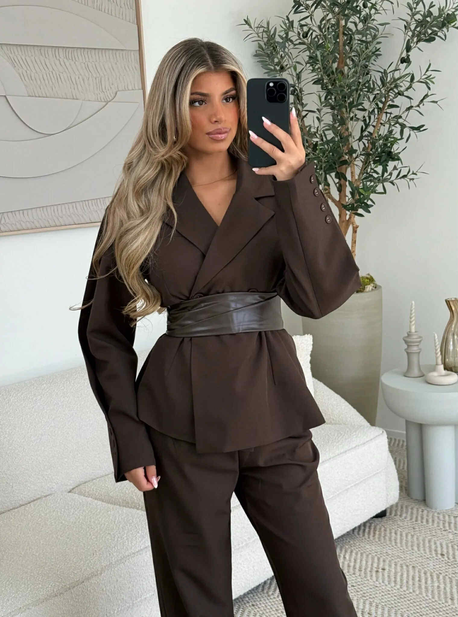 Bæltet kan aftages på blazeren og bukserne er der fede knap detaljer på.