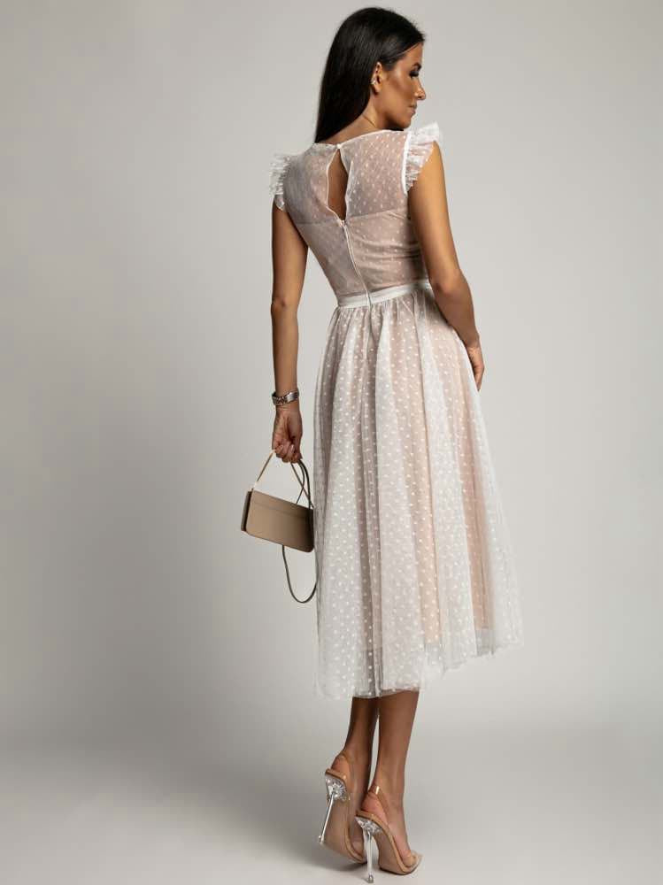 BESKRIVELSE: Fineste tyl kjole med det fineste lette stof. Virkeligt en kvalitets luksus kjole.
