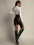 Beskrivelse: Skønneste læder look skirt med slids og fine detaljer.