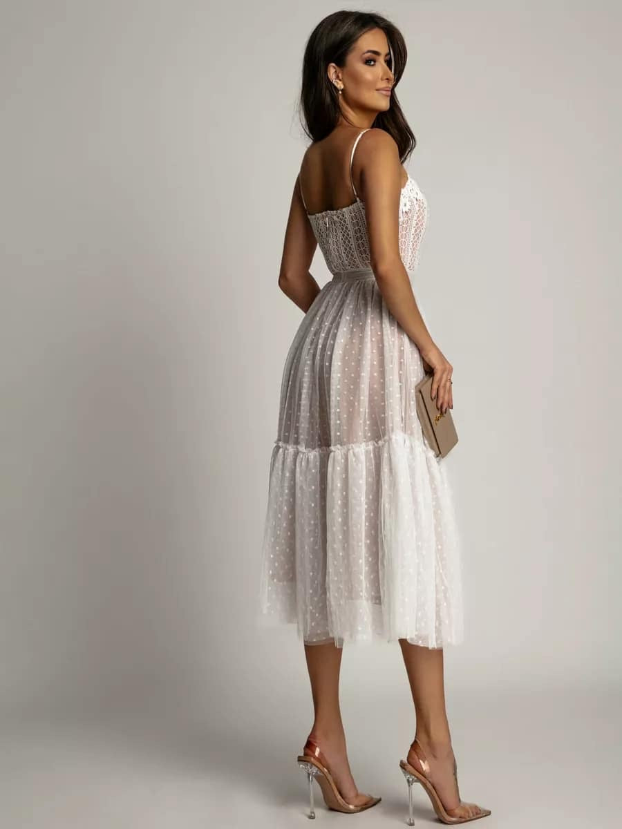 BESKRIVELSE: Fineste tyl kjole med det fineste lette stof. Virkeligt en kvalitets luksus kjole.