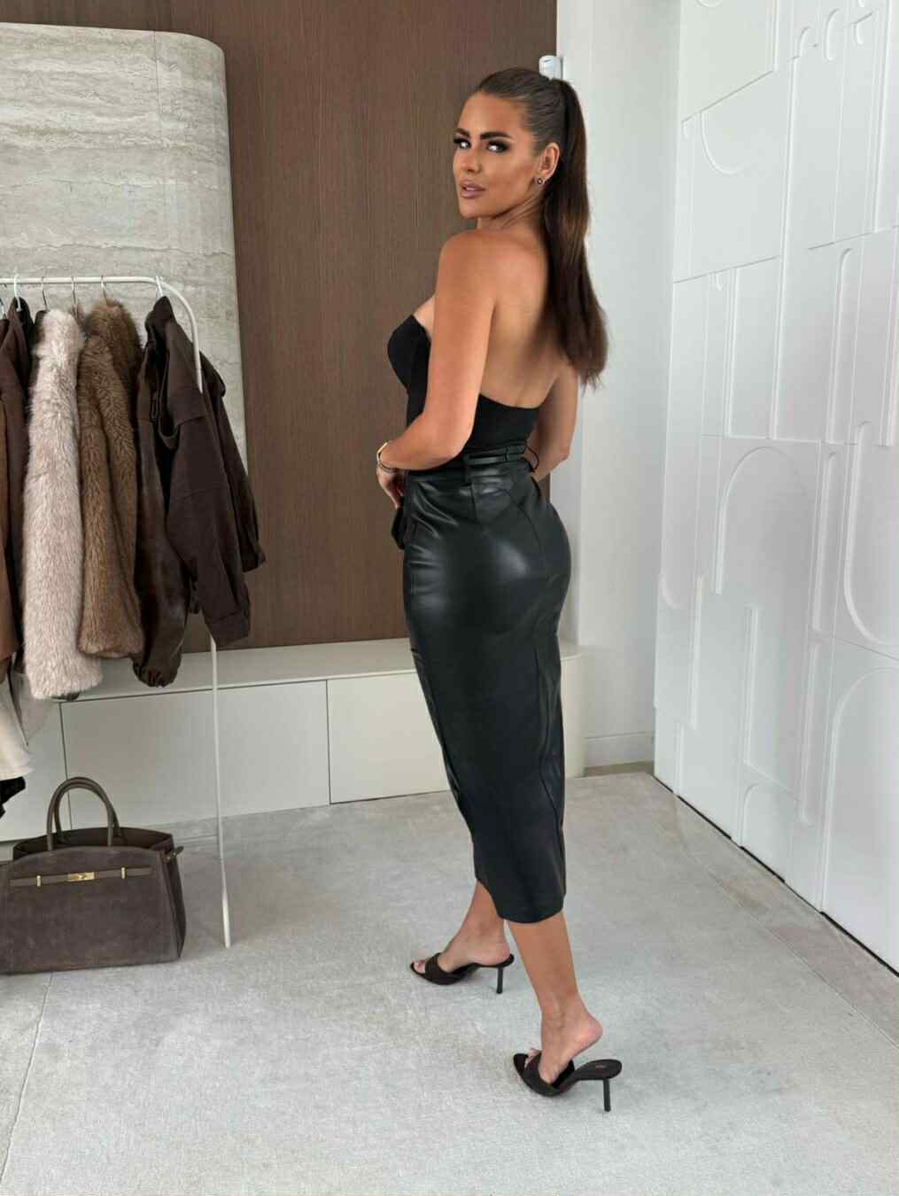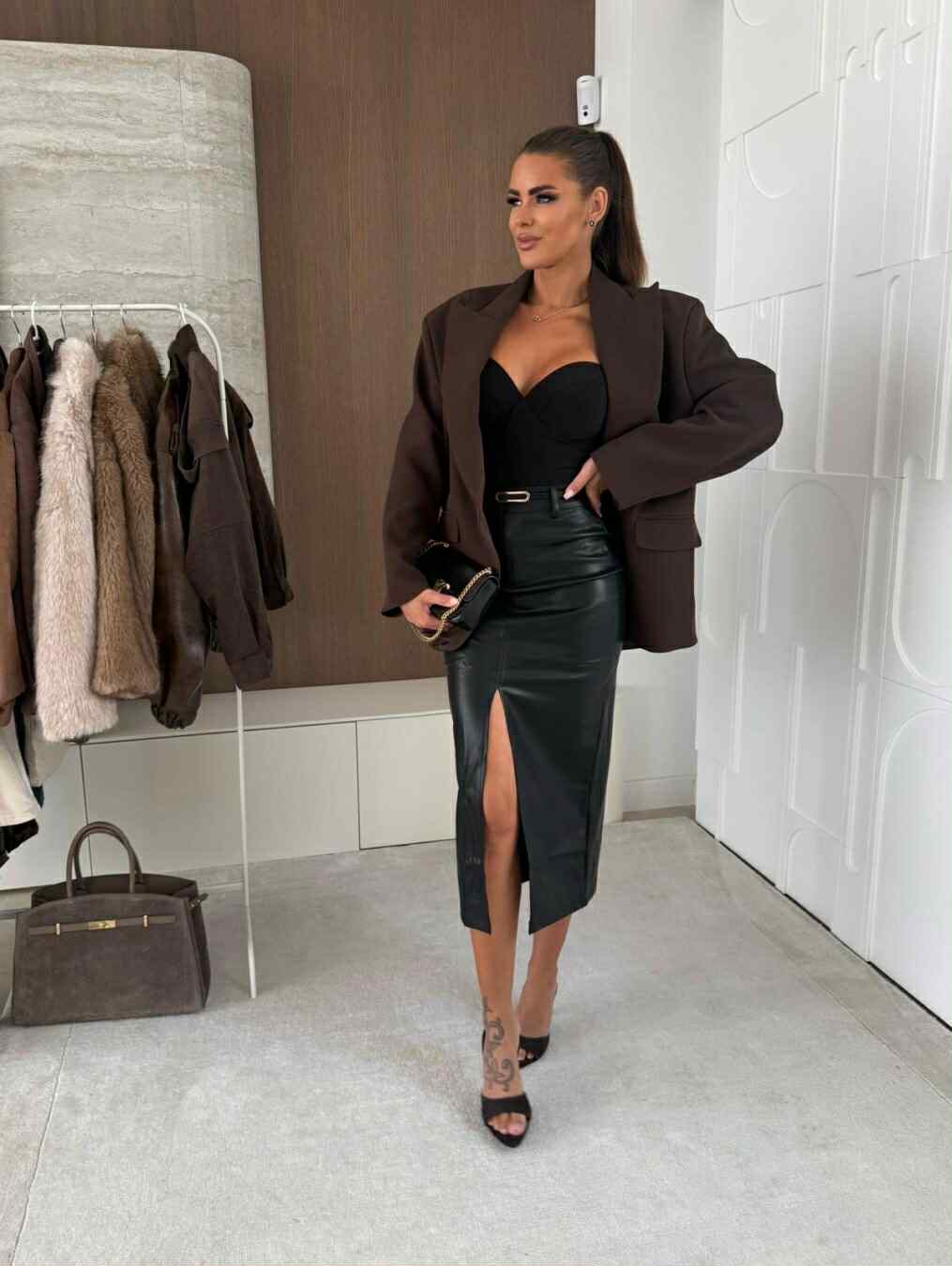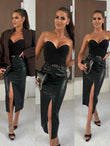 Beskrivelse: Skænneste læder look skirt med slids og fine detaljer.