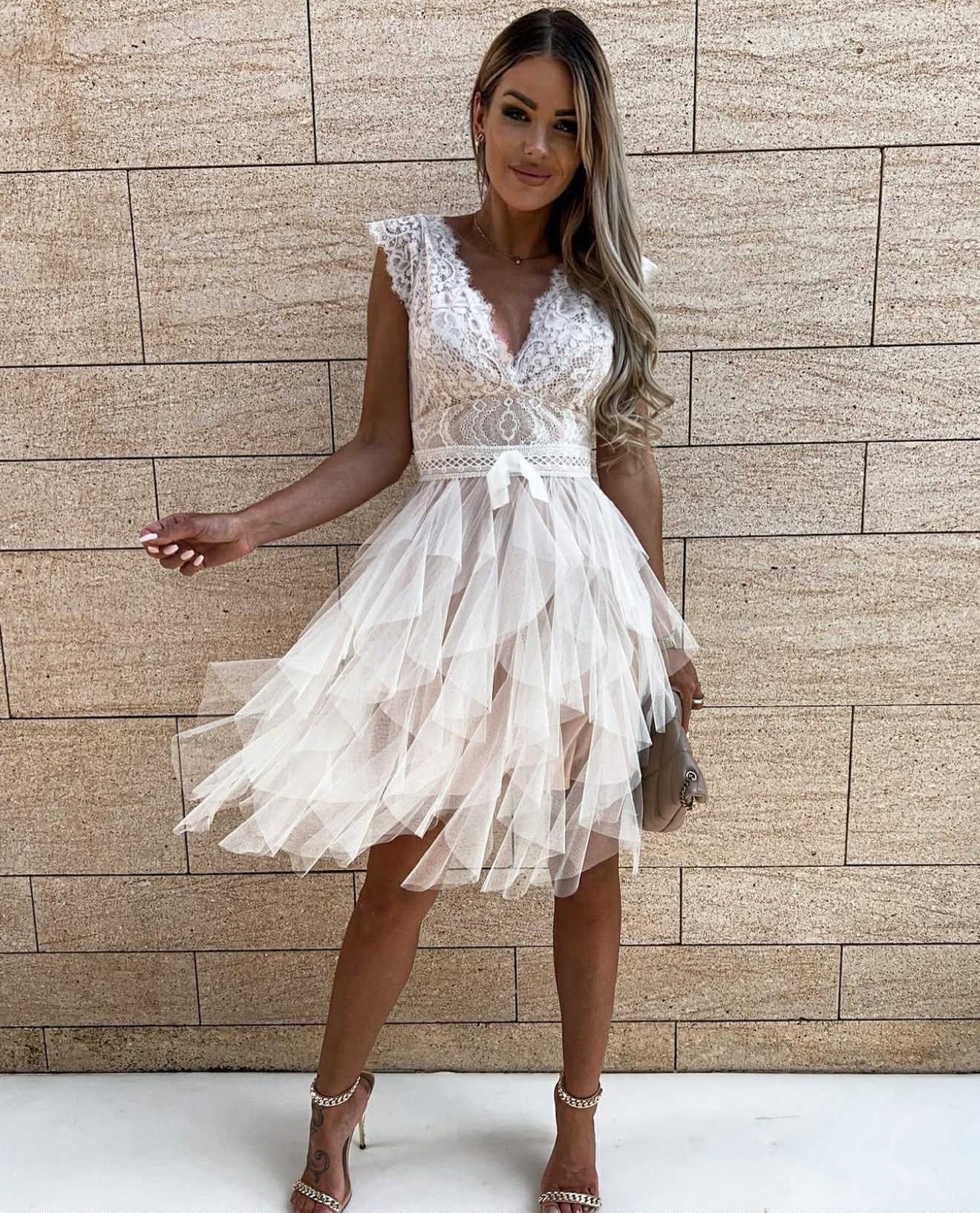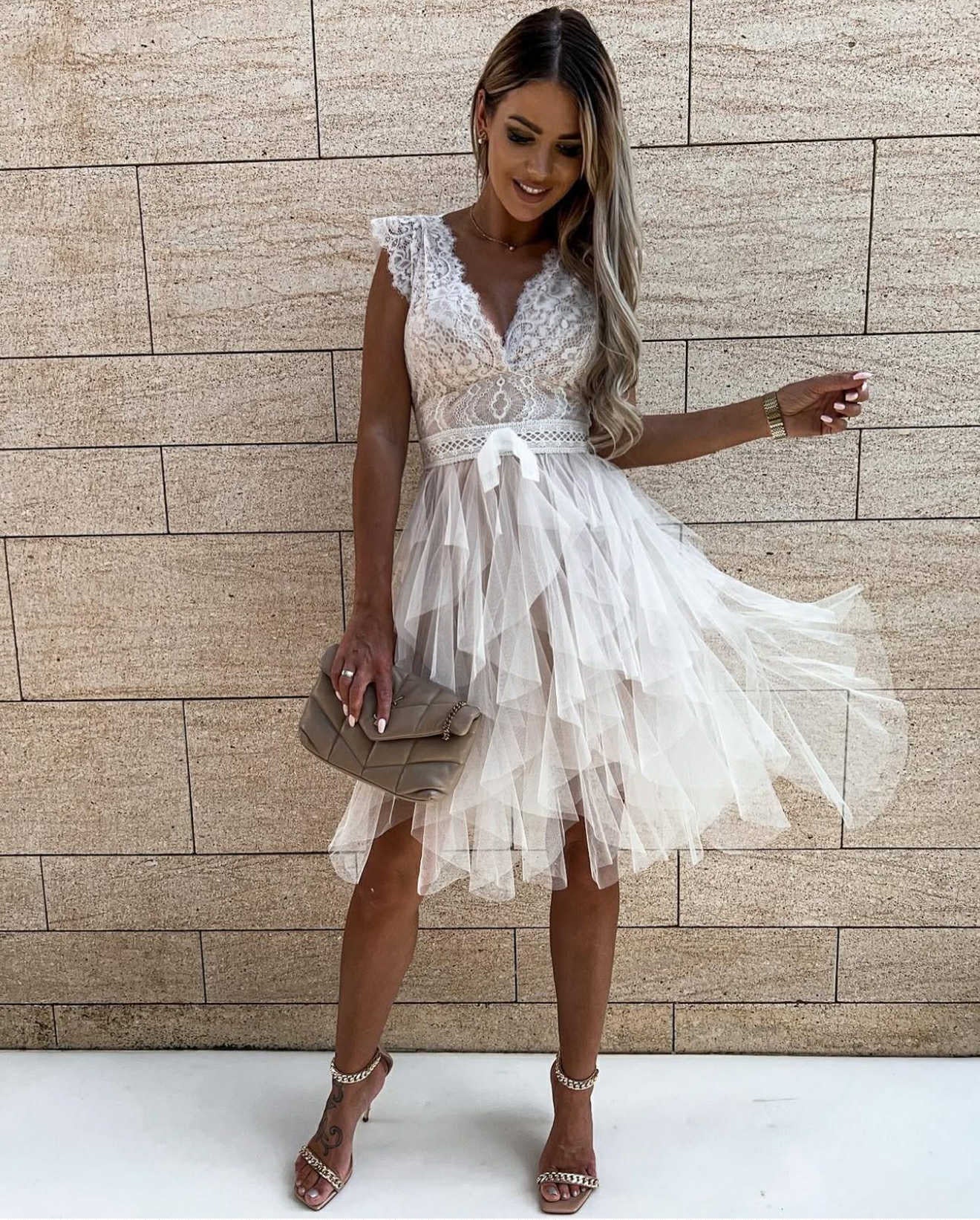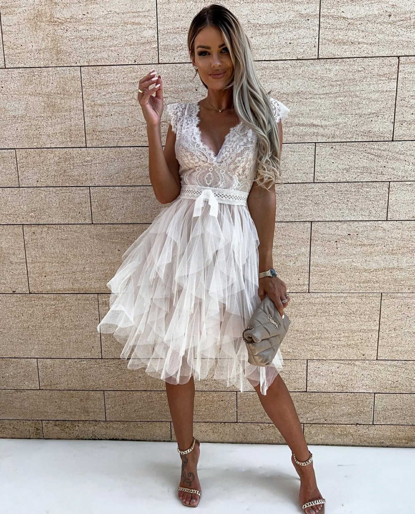 beskrivelse: den smukkeste kjole med de mest smukke blonde detaljer.