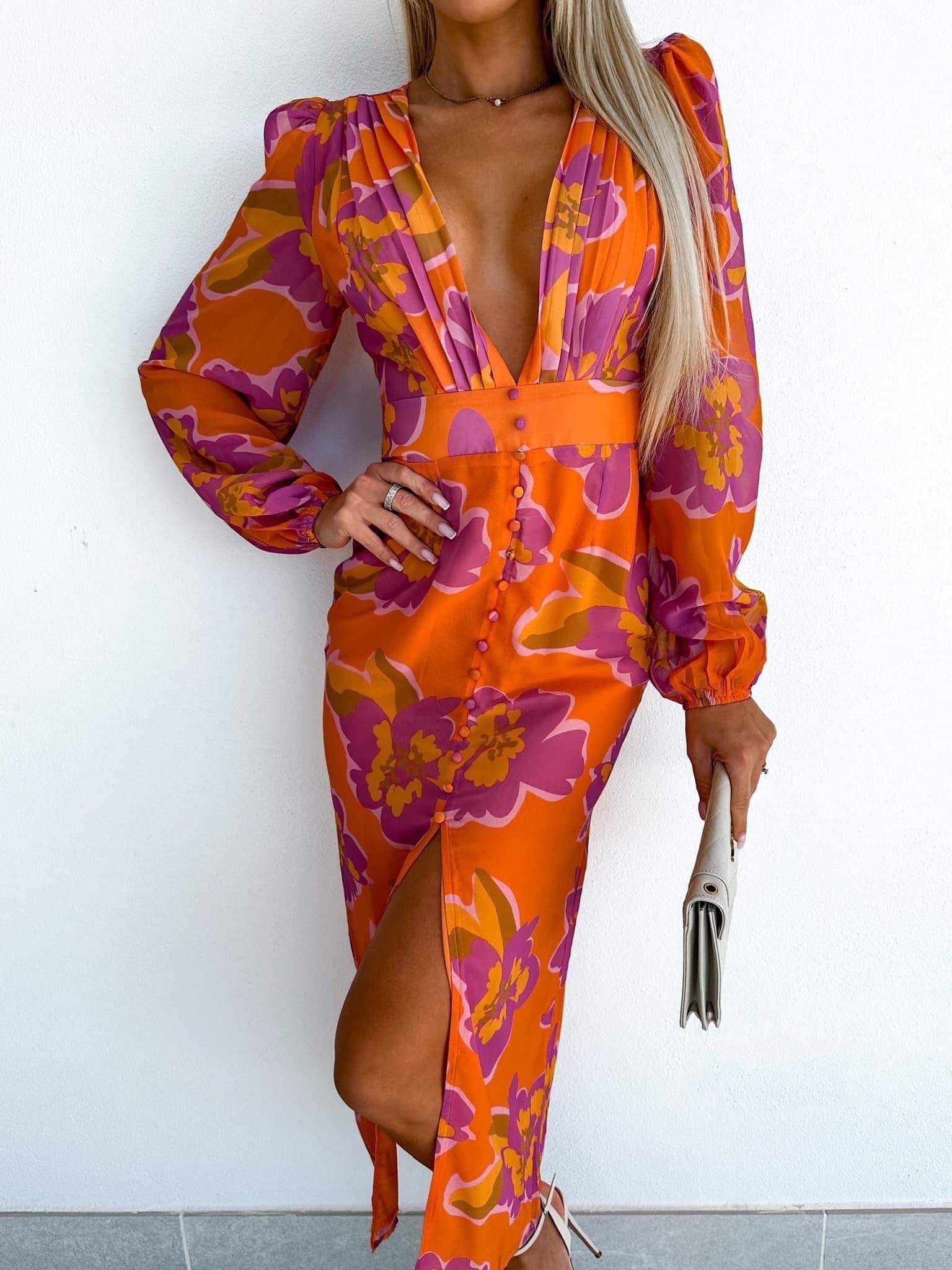 Beskrivelse: Smukkeste printet kjole med det fineste snit, en rigtig unik kvalitets kjole.