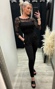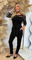 beskrivelse: skønneste nye buksedragt med de smukkeste detaljer samt glitter på. Modellen har small på.