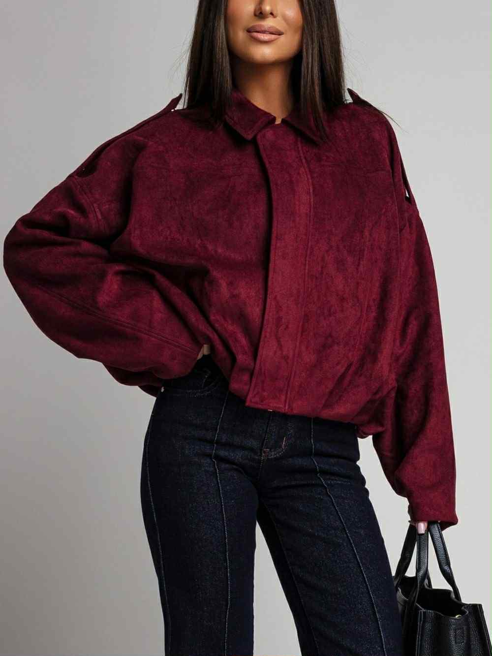 BESKRIVELSE: Fineste ruskinds look jakke med det fineste lette stof. Stræk i.